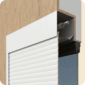 Короб монтируется внутрь проёма или в нишу. Незаметная конструкция, эстетичный вид.